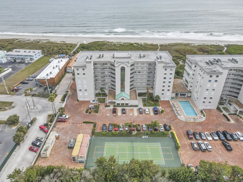 Ocean Front – Breathtaking View of The Atlantic Ocean! For Sale 7th Floor Condo unit in Emerald Seas, a gated community. Amazing Ocean view from main area of the home, spacious private balcony facing the the morning sunrises and the beach (East). Unit is being sold furnished, move in ready, with updated new wind rated windows and doors, hurricane shutters, updated kitchen with quartz counters. A must see! Assigned parking space and upright storage in the community garage on the first floor of building. New as of April 2023 Rental Restriction waiting period of two years applies. Perfect place, great amenities, resort like feel, wonderful location on the Space Coast. Cruise ships and Rocket launch views, 1 hour drive proximity to Orlando, near Port Canaveral, amongst many local restaurants and shops. ON THE BEACH!!